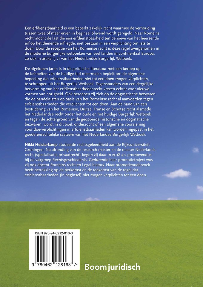 Aan de hand van een bestudering van het Romeinse, Duitse, Franse en Schotse recht alsmede het Nederlandse recht onder het oude en het huidige Burgerlijk Wetboek en tegen de achtergrond van de geopperde historische en dogmatische bezwaren, wordt in dit boek onderzocht of een algemene voorziening voor doe-verplichtingen in erfdienstbaarheden kan worden ingepast in het goederenrechtelijke systeem van het Nederlandse Burgerlijk Wetboek.