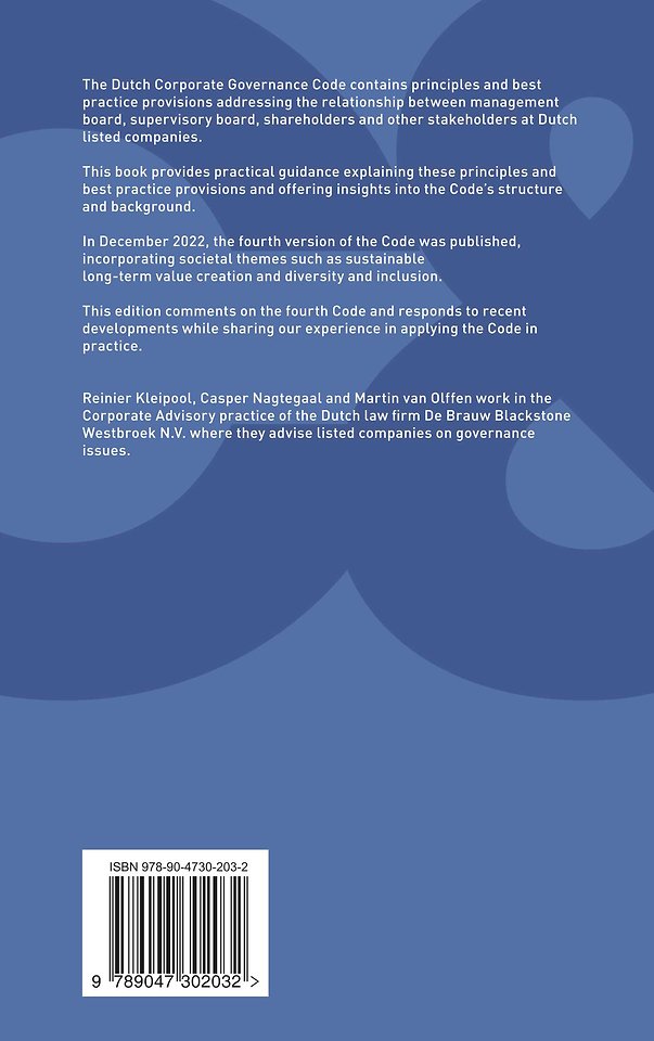 The Dutch Corporate Governance Code contains principles and best practice provisions addressing the relationship between management board, supervisory board, shareholders and other stakeholders at Dutch listed companies.