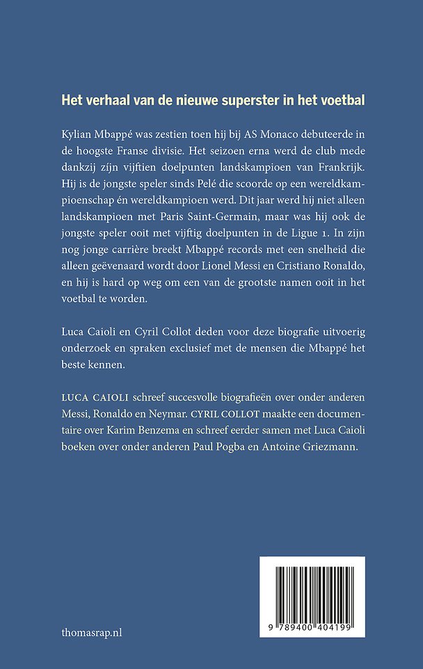 Luca Caioli en Cyril Collot deden voor deze biografie uitvoerig onderzoek en spraken exclusief met de mensen die Mbappé het beste kennen.