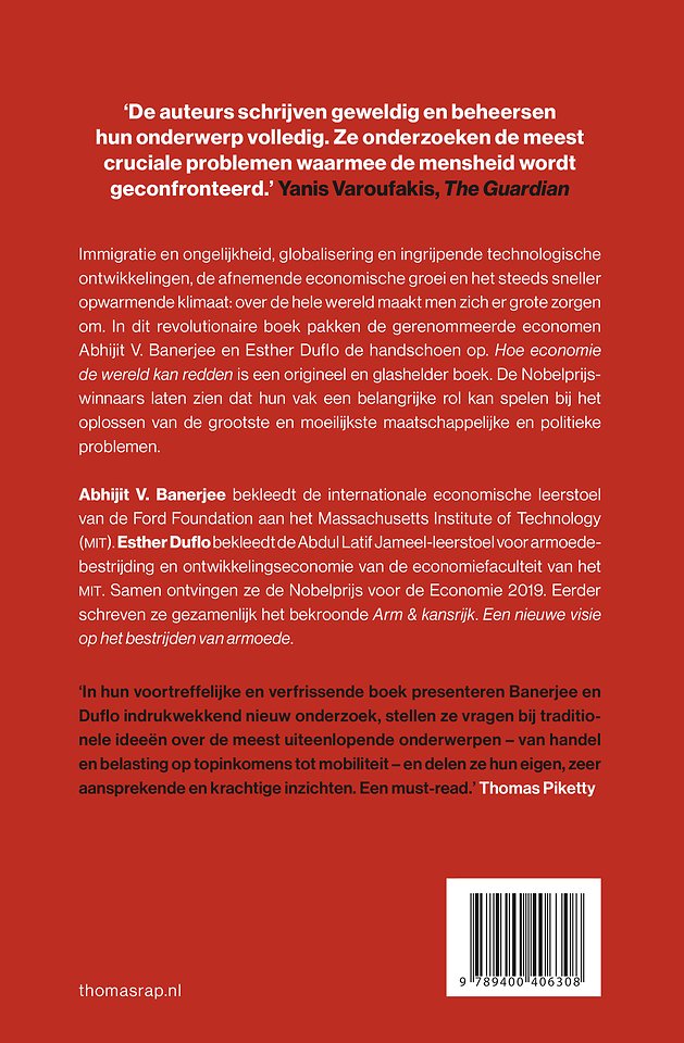 In dit revolutionaire boek pakken de gerenommeerde economen Abhijit Banerjee en Esther Duflo de handschoen op. 'Hoe economie de wereld kan redden' is een origineel en glashelder boek. De Nobelprijswinnaars laten zien dat hun vak een belangrijke rol kan spelen bij het oplossen van de grootste en moeilijkste maatschappelijke en politieke problemen.