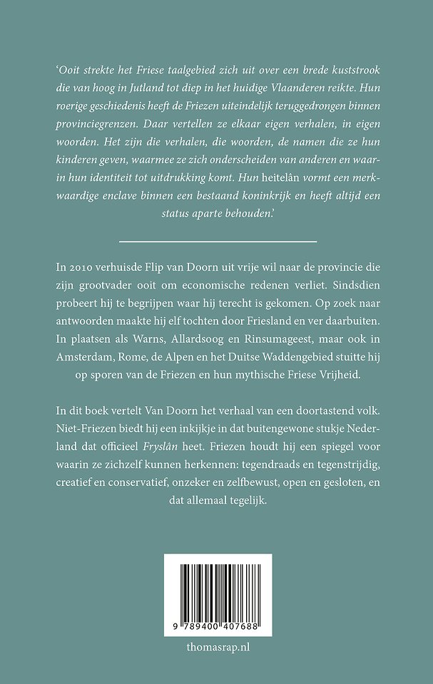 provincie Friesland reiken. Niet-Friezen biedt hij een inkijkje in dat buitengewone stukje Nederland dat officieel Fryslân heet, Friezen houdt hij een