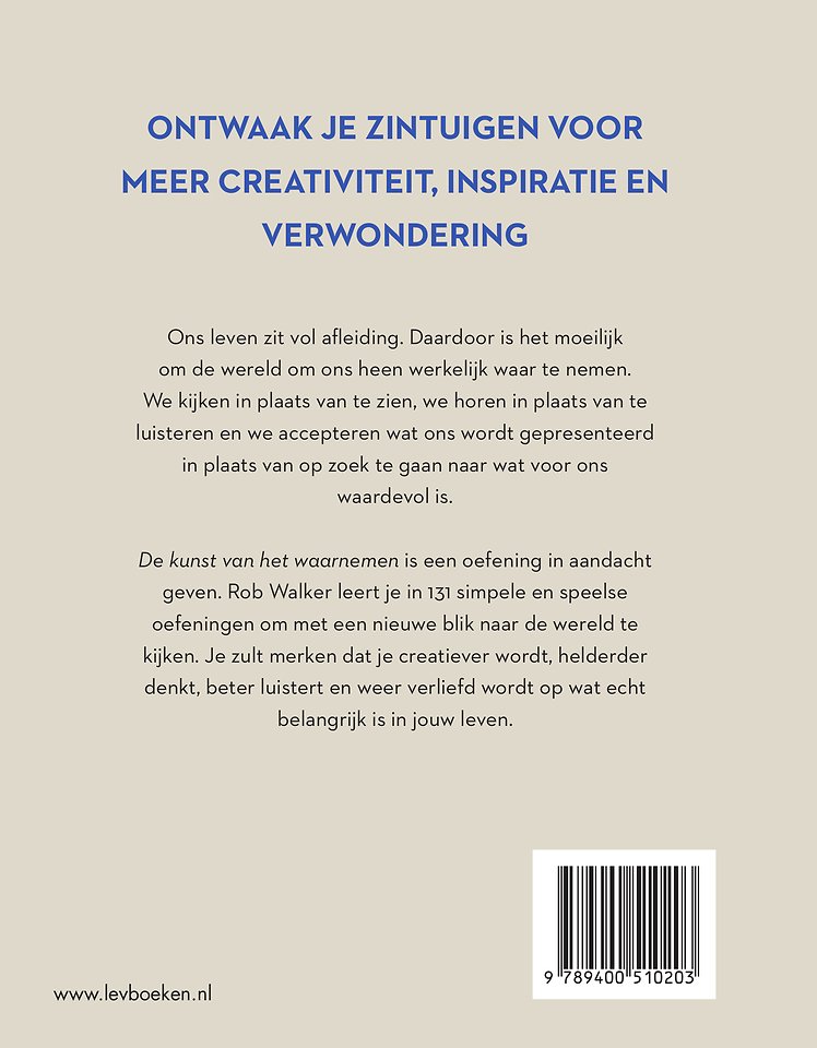 De kunst van het waarnemen is een oefening in aandacht geven. Rob Walker leert je in 131 simpele en speelse oefeningen om met een nieuwe blik naar de wereld te kijken. Je zult merken dat je creatiever wordt, helderder denkt, beter luistert en weer verliefd wordt op wat echt belangrijk is in jouw leven.