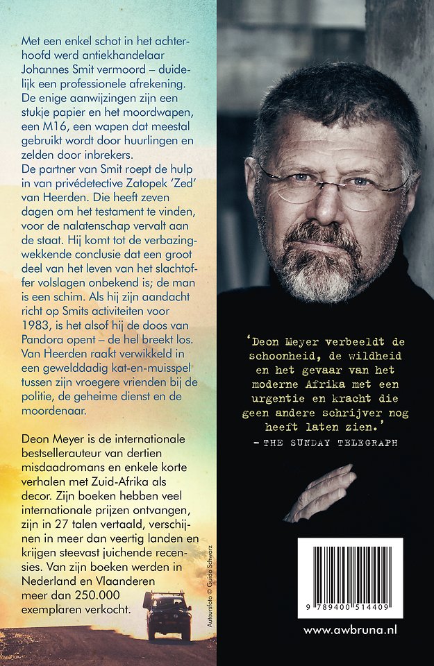 De partner van Smit roept de hulp in van privédetective Zatopek ‘Zed’ van Heerden. Die heeft zeven dagen om het testament te vinden, voor de nalatenschap vervalt aan de staat. Hij komt tot de verbazingwekkende conclusie dat een groot deel van het leven van het slachtoffer volslagen onbekend is; de man is een schim. Als hij zijn aandacht richt op Smits activiteiten voor 1983, is het alsof hij de doos van Pandora opent – de hel breekt los.