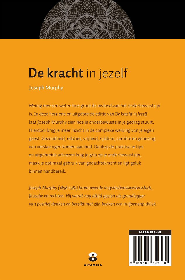 De invloed van je onderbewustzijn op je gedrag, je lichaam en je denkwijze is enorm groot. In 'De kracht in jezelf' laat Joseph Murphy zien hoe je gedrag beïnvloed wordt en geef je inzicht in de complexe werking van je eigen geest. Dankzij de praktische tips en uitgebreide adviezen die Murphy biedt, krijg je grip op je onderbewustzijn en maak je optimaal gebruik van de kracht van positief denken. Gezondheid, relaties, vrijheid, rijkdom, carrière en genezing komen aan bod. Allerlei onderwerpen waarbij je onderbewustzijn en gedachtekracht een grote rol speelt. 'De kracht in jezelf' is het perfecte boek voor iedereen die een kijkje wil nemen in hun eigen onderbewustzijn.