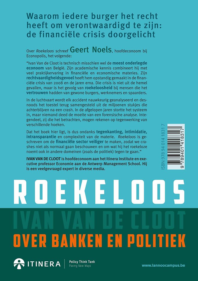 Zowel in de politiek als de bankenwereld wordt gewerkt met geld van anderen waardoor extra waakzaamheid geboden is. Het verhaal van de crisis is het ontluisterende verhaal van een opeenstapeling van beoordelingsfouten en rookgordijnen, van falend risicobeheer en roekeloze hefbomen, van een blindelings geloof in financiële spitstechnologie en incompetent bankbestuur, van een beleid dat de eigen hand keer op keer overspeelt en de eigen fouten afwentelt op de belastingbetaler. De tijdbom zal nog jaren tikken.