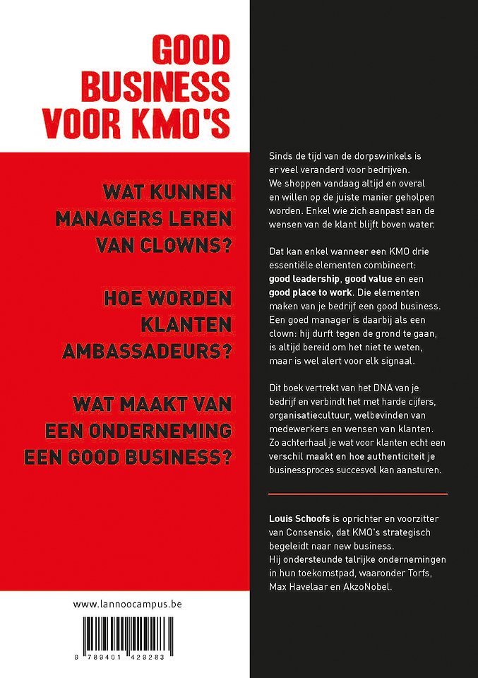 Dat kan enkel wanneer een KMO drie essentiële elementen combineert: good leadership, good value en een good place to work. Die elementen maken van je bedrijf een good business. Een goed manager is daarbij als een clown: hij durft tegen de grond te gaan, is altijd bereid om het niet te weten, maar is wel alert voor elk signaal.
