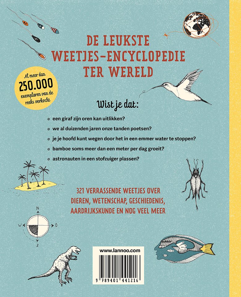 Wist je dat: - een giraf z'n oren kan uitlikken? - we al duizenden jaren onze tanden poetsen? - je je hoofd kunt wegen door het in een emmer water te stoppen? - bamboe soms meer dan een meter per dag groeit? - astronauten in een stofzuiger plassen? 321 verrassende weetjes over dieren, wetenschap, geschiedenis, aardrijkskunde en nog veel meer
