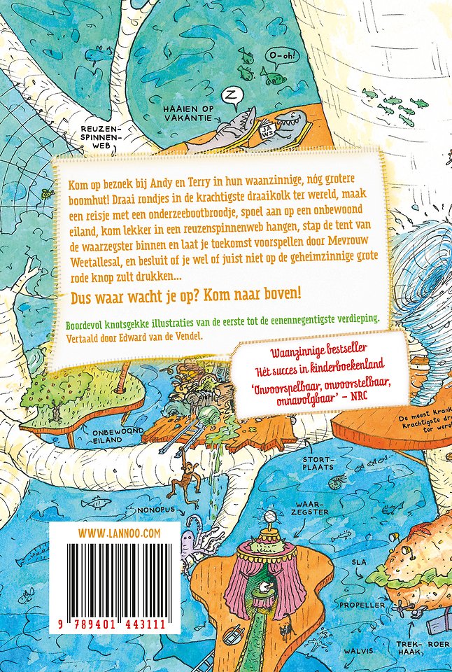 Kom op bezoek bij Andy en Terry in hun waanzinnige, nóg grotere boomhut! Draai rondjes in de krachtigste draaikolk ter wereld, maak een reisje met een onderzeebootbroodje, spoel aan op een onbewoond eiland, kom lekker in een reuzenspinnenweb hangen, stap de tent van een waarzegster binnen en laat je toekomst voorspellen door Mevrouw Weetallesal, en besluit of je wel of juist niet op de geheimzinnige grote rode knop zult drukken...