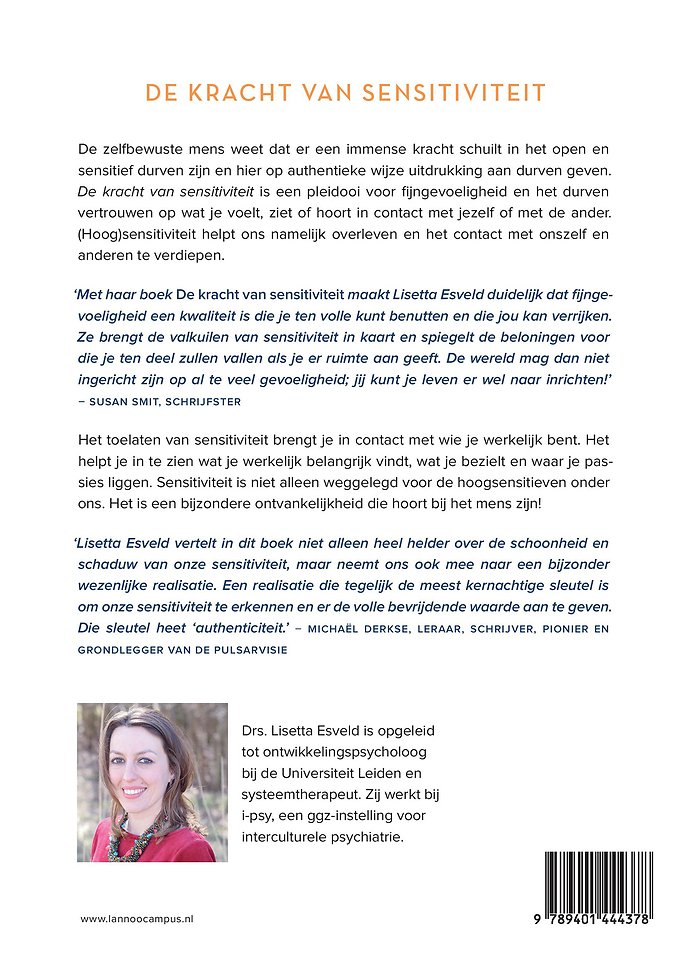 In dit helder geschreven boek laat psychologe Lisetta Esveld zien hoe je om kunt gaan met sensitiviteit en hoe je dit kunt inzetten om je leven, zowel privé als professioneel te verrijken.
