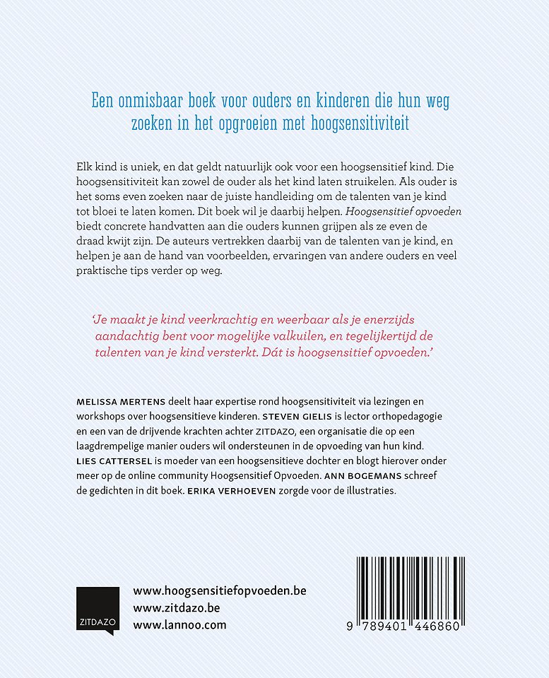 Elk kind is uniek, en dat geldt natuurlijk ook voor een hoogsensitief kind. Die hoogsensitiviteit kan zowel de ouder als het kind laten struikelen. Als ouder is het soms even zoeken naar de juiste handleiding om de talenten van je kind tot bloei te laten komen. Dit boek wil je daarbij helpen. Hoogsensitief opvoeden biedt concrete handvatten aan die ouders kunnen grijpen als ze even de draad kwijt zijn. De auteurs vertrekken daarbij van de talenten van je kind, en helpen je aan de hand van voorbeelden, ervaringen van andere ouders en veel praktische tips verder op weg.