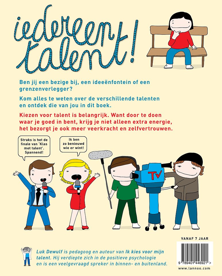 In een spectaculaire talentshow op de televisie wordt een klas verkozen met het meeste talent. Maar het is niet de klas die je verwacht...Laat je leiden door dit kleurrijke boek en ontdek welke talenten jij bezit. Ben je een bezige bij, een ideeënfontein of een grenzenverlegger?Kiezen voor je talenten is belangrijk. Want door te doen waar je goed in bent, krijg je niet alleen extra energie, het bezorgt je ook een positief zelfbeeld, meer veerkracht en zelfvertrouwen.
