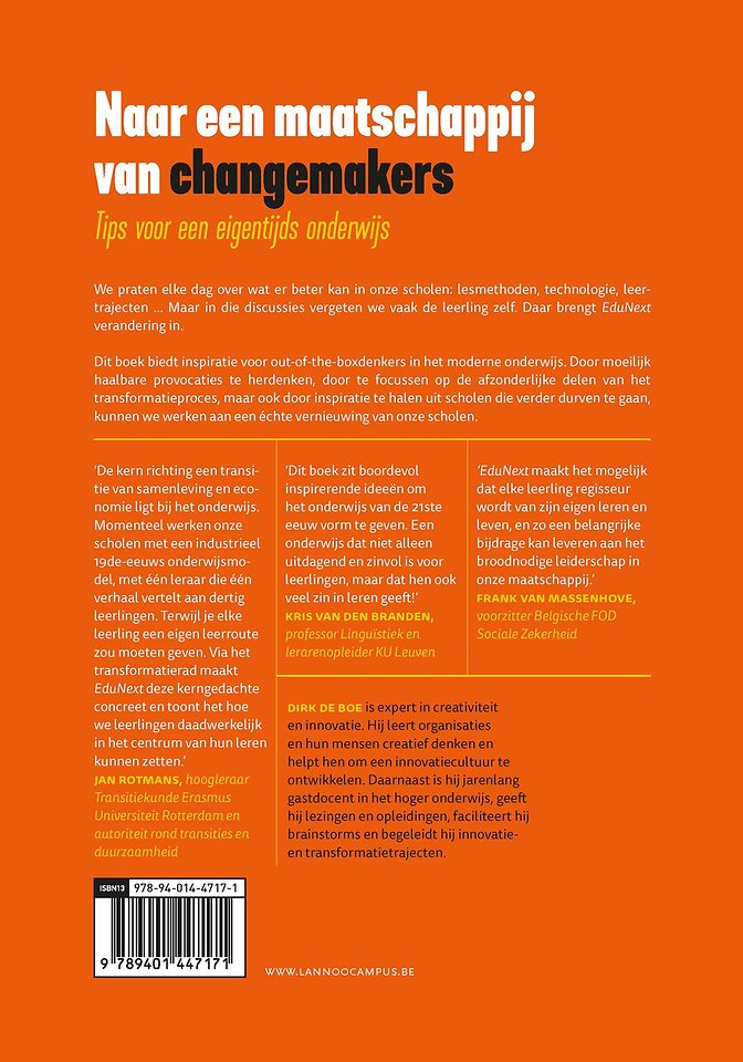 We praten elke dag over wat er beter kan in onze scholen: lesmethoden, technologie, leertrajecten ... Maar in die discussies vergeten we vaak de leerling zelf. Daar brengt EduNext verandering in.Dit boek biedt inspiratie voor out-of-the-boxdenkers in het moderne onderwijs.