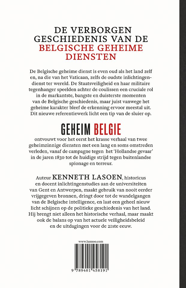 Met haar oprichting in de eerste dagen na de onafhankelijkheid, is de Belgische Veiligheid van de Staat de op een na oudste inlichtingendienst ter wereld. Alleen die van het Vaticaan is ouder. Ondanks die lange en vaak roemruchte geschiedenis blijft de rol van de Staatsveiligheid en haar militaire tegenhanger in de werking van de Belgische staat sterk onderbelicht. Dit boek vult die leemte.