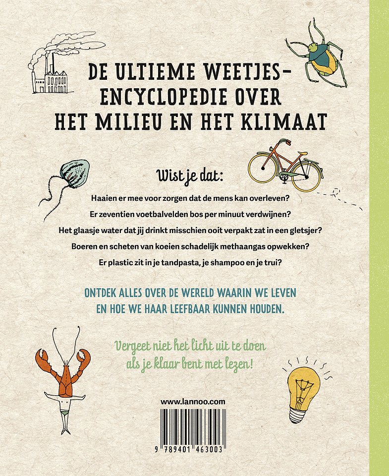 Wist je dat: Haaien er mee voor zorgen dat de mens kan overleven? Er zeventien voetbalvelden bos per minuut verdwijnen? Het glaasje water dat jij drinkt misschien ooit verpakt zat in een gletsjer? Boeren en scheten van koeien schadelijk methaangas opwekken? Er plastic zit in je tandpasta, je shampoo en je trui?