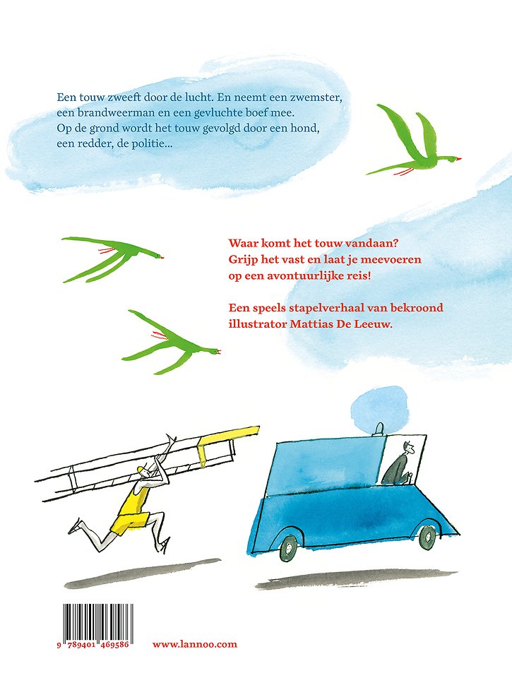 kinderboek prentenboek avontuur stapelverhaal fantasie illustraties achtervolging avontuurlijke reis verbeelding spanning mysterie voorleesboek visueel verhaal personages interactief verhaal nieuwsgierigheid ontdekking literatuur speels verhaal vlaamse literatuur achtervolgers kinderfantasie redding creativiteit bizarre situaties verwondering bekroonde illustrator vlucht