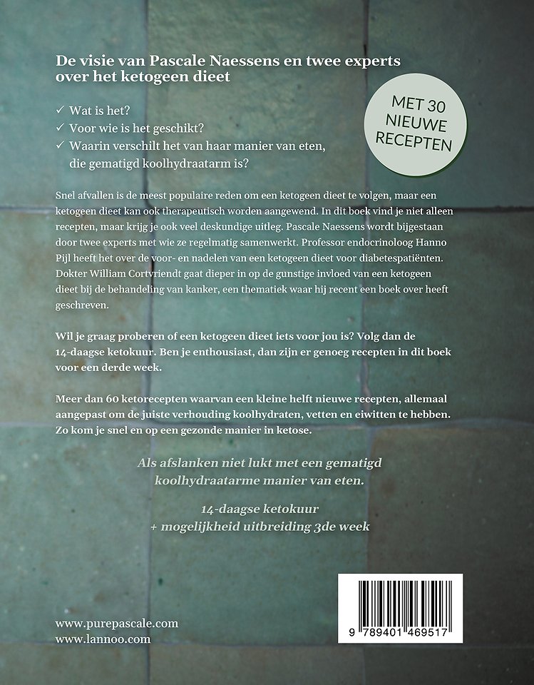 Snel afvallen is de meest populaire reden om een ketogeen dieet te volgen, maar een ketogeen dieet kan ook therapeutisch worden aangewend. In dit boek vind je niet alleen recepten, maar krijg je ook veel deskundige uitleg. Pascale Naessens wordt bijgestaan door twee experts met wie ze regelmatig samenwerkt. Professor endocrinoloog Hanno Pijl heeft het over de voor- en nadelen van een ketogeen dieet voor diabetespatiënten. Dokter William Cortvriendt gaat dieper in op de gunstige invloed van een ketogeen dieet bij de behandeling van kanker, een thematiek waar hij recent een boek over heeft geschreven.