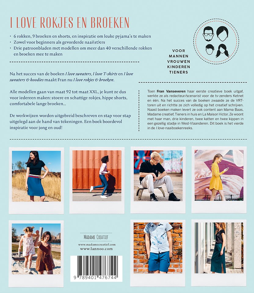 Na het succes van de boeken I love sweaters, I love T-shirts en I love sweaters & hoodies maakt Fran nu I love rokjes & broeken. Alle modellen gaan van maat 92 tot maat XXL, je kunt ze dus voor iedereen maken: stoere en schattige rokjes, hippe shorts, comfortabele lange broeken...