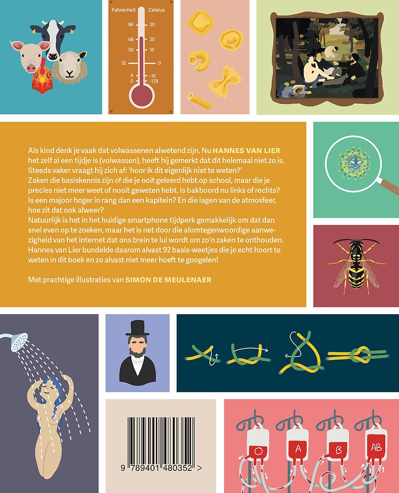 Natuurlijk is het in het huidige smartphone tijdperk gemakkelijk om dat dan snel even op te zoeken, maar het is net door die alomtegenwoordige aanwezigheid van het internet dat ons brein te lui wordt om zo'n zaken te onthouden. Hannes van Lier bundelde daarom alvast 92 basisweetjes die je echt hoort te weten in dit boek en zo alvast niet meer hoeft te googelen!