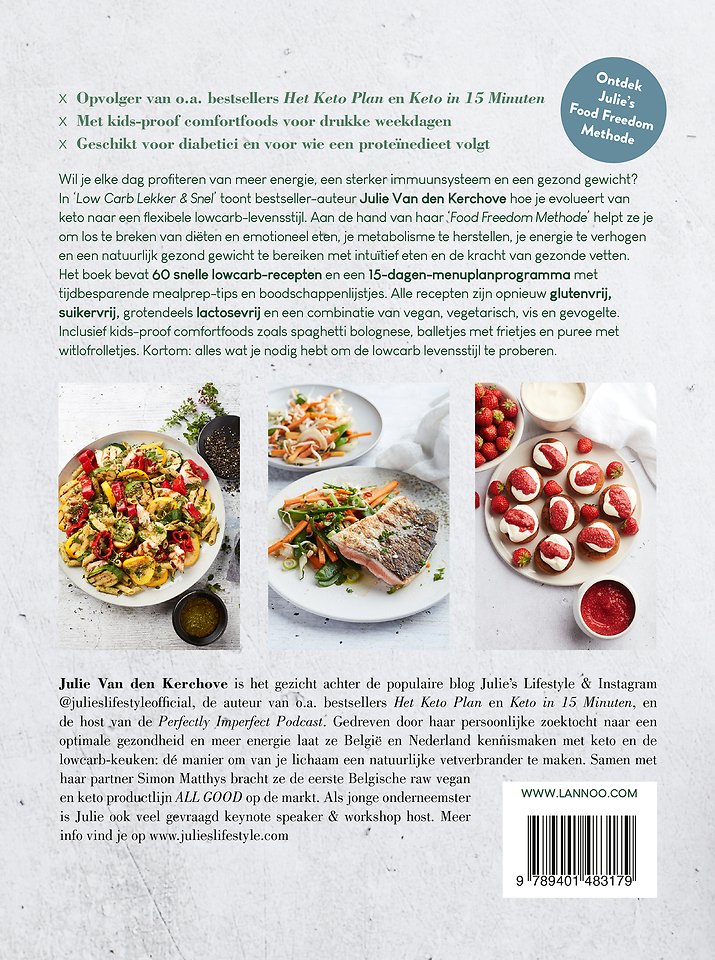 Wil je elke dag profiteren van meer energie, een sterker immuunsysteem en een gezond gewicht? In Low Carb Lekker & Snel toont bestseller-auteur Julie Van den Kerchove hoe je evolueert van keto naar een flexibele lowcarb-levensstijl. Aan de hand van haar 'Food Freedom Methode' helpt ze je om los te breken van diëten en emotioneel eten, je metabolisme te herstellen, je energie te verhogen en een natuurlijk gezond gewicht te bereiken met intuïtief eten en de kracht van gezonde vetten.