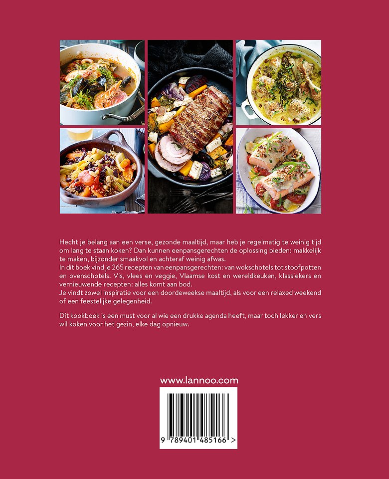 In dit boek vind je 265 recepten van eenpansgerechten: van wokschotels tot stoofpotten en ovenschotels. Vis, vlees en veggie, Vlaamse kost en wereldkeuken, klassiekers en vernieuwende recepten: alles komt aan bod.
