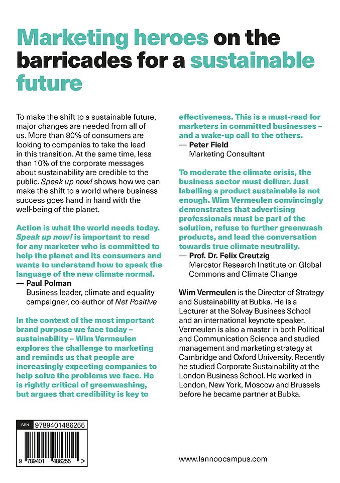 To make the shift to a sustainable future, major changes are needed from all of us. More than 80% of consumers are looking to companies to take the lead in this transition. At the same time, less than 10% of the corporate messages about sustainability are credible to the public. Speak up now! shows how we can make the shift to a world where business success goes hand in hand with the well-being of the planet.