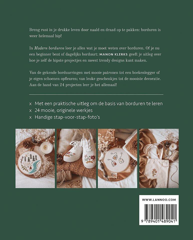 In Modern borduren leer je alles wat je moet weten over borduren. Of je nu een beginner bent of dagelijks borduurt: Manon Klerks geeft je uitleg over hoe je zelf de hipste projectjes en meest trendy designs kunt maken.