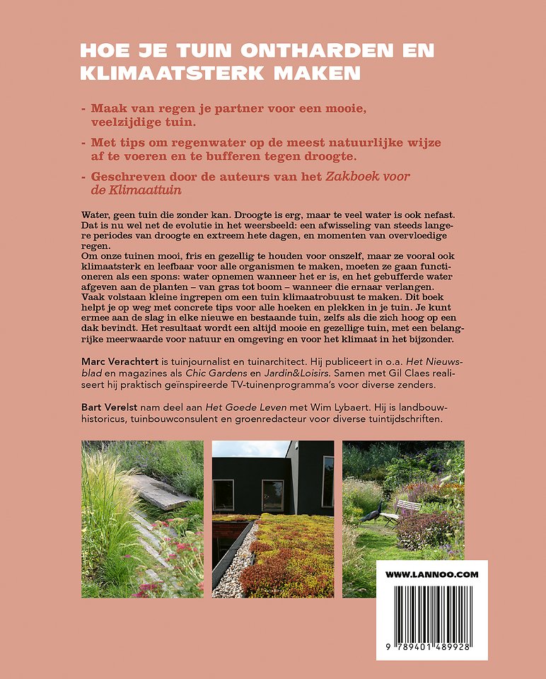 Maak van regen je partner voor een mooie, veelzijdige tuin. Met tips om regenwater op de meest natuurlijke wijze af te voeren en te bufferen tegen droogte. Geschreven door de auteurs van het Zakboek voor de Klimaattuin