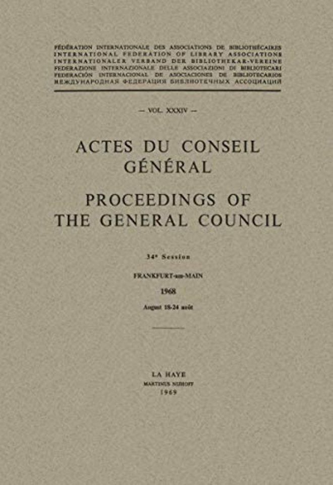 Table des Matières / List of Contents.- Première séance (plénière).- 1. Paroles de bienvenue.- Prof. Dr. W. Brundert, Oberbürgermeister.- Prof. Dr. E. Schütte, Kultusminister.- Dr. H. Lohse, Präsident, Verein Deutscher Bibliothekare..- 2. Discours d’ouverture du Président de la Fédération.- 3. Rapport financier du Trésorier.- 4. Rapport du Secrétaire général.- 5. Rapport du représentant de I’UNESCO.- 6. Rapport du représentant de la FID.- Deuxième séance (plénière).- 7. « Le livre et la bibliothèque dans une société industrielle — Books and libraries in an industrial society ».- a) Prof. Dr. W. RÜEGG.- b) Dr. J. E. MORPURGO..- c) Mr. V. ORLOV (document distribué)..- Troisième séance (plénière).- 8. Rapports et résolutions des Sections et Commissions.- Associations internationales: AIL, IATUL.- A. Résolutions des Sections (de types de bibliothèques).- la. Bibliothèques nationales et universitaires.- 1b. Sous-section des bibliothèques universitaires.- 2. Bibliothèques de lecture publique.- 2a. INTAMEL.- 2b. Sous-section des bibliothèques d’enfants.- 2c. Sous-section des bibliothèques d’hôpitaux.- 3. Bibliothèques spécialisées.- 3a. Sous-section des bibliothèques d’observatoires astronomiques.- 4. Bibliothèques parlementaires et administratives.- B. Résolutions des Commissions (problèmes de bibliothéconomie).- 1. Unification des règles de catalogue.- 2. Catalogues collectifs et prêt international.- 3. Echange de publications.- 3a. Echange de publications officielles.- 4. Périodiques et publications en série.- 5. Statistique.- 6. Fonds et documents rares et précieux.- 7. Formation professionnelle.- 8. Construction des bibliothèques.- 9. Mécanisation.- 10. Bibliographie.- 9. Communications du Bureau exécutif.- a) Le prix Sevensma.- b) La commission de la statistique.- c) Changements de fonctionnaires.- d) Charte de livre.- e) Sessions futures du Conseil général.- 10. Discours de clôture du Président.- Annexes.- Rapports Annuels Et Détails des Associations-Membres Annual Reports and Details of Member-Associations.- UDC (100) Associations internationales.- Association of Libraries of Judaica and Hebraica in Europe.- International Association of Agricultural Librarians and Documentalists (IAALD).- International Association of Technological University Libraries (IATUL).- International Association of Law Libraries.- Association of International Libraries.- Membres nationaux UDC (4) Europe.- Allemagne:.- Bundesrepublik: Verein Deutscher Bibliothekare, 1967/1968.- Verein der Bibliothekare an öffentlichen Büchereien (vormals: Verein Deutscher Volksbibliothekare) 1967/1968.- Verein der Diplom-Bibliothekare an wissenschaftlichen Bibliotheken, 1967/1968.- Deutscher Büchereiverland.- Arbeitsgemeinschaft der Spezialbibliotheken 1967/1968.- D.D.R. Deutscher Bibliotheksverband, 1967/1968..- Deutsche Staatsbibliothek, 1967.- Deutsche Bücherei, 1967/1968.- Nationale Forschungs-und Gedänkstätten, Weimar.- Autriche:Vereinigung Österreichischer Bibliothekare, 1967/1968.- Verband Österreichischer Volksbüchereien.- Association des archivistes et bibliothécaires de Belgique, et Vlaamse Vereniging van Bibliothek -en archiefpersoneel.- Croix-Rouge de Belgique. Conseil national des Bibliothèques d’hôpitaux.- Union des Bibliothécaires auxiliaires sociaux..- Association nationale des Bibliothécaires d’expression française de Belgique.- Bulgarie: Libraries in Bulgaria, 1967/1968.- Danemark: Libraries in Denmark, 1967/1968.- Danmarks Biblioteksforening.- Danmarks Videnskabelige og Faglige Bibliotekers Sammenslutning.- Espagne:Asociación nacional de Archiveros, bibliotecarios y arqueólogos de España.- Finlande: Suomen Kirjastoseura, 1967/1968.- Suomen tieteellinen Kirjastoseura. Finlands Vetenskapliga Bibliotekssamfund.- France: Association des bibliothécaires français.- Grande-Bretagne: The Library Association, 1967.- Hollande: Libraries in the Netherlands in 1967.- Rijkscommissie van advies inzake het bibliotheekwezen.- Centrale Vereniging voor openbare Bibliotheken.- Nederlandse Vereniging van Bibliothecarissen.- Hongrie: Association of Hungarian librarians, 1967..- Islande: Association of Icelandic Librarians.- Italie: Associazione Italiana Biblioteche, 1967/1968.- Luxembourg: Bibliothèque nationale du Grand-Duché.- Monaco: Bibliothèque de Monaco.- Norvège: Norsk bibliotekforening, 1966 and 1967.- Norsk bibliotekarlag.- Norsk forskningsbibliotekarers forening.- Pologne: Association des bibliothécaires polonais, 1968.- Portugal: Direcçäo-Geral do Ensino superior e das Belas-artes.- Roumanie: Asociatia hibliotecarilor din Republica Populara Romîna.- Suède: Svenska Bibliotekariesamfundet.- Sveriges Allmänna Biblioteksforening.- Sveriges Vetenskapliga Specialbiblioteks förening.- Svenska Folkbibliotekarieförbundet.- Swedish libraries, 1967/1968.- Suisse: Vereinigung Schweizerischer Bibliotekare, 1967/1968.- URSS: USSR Library Council. Library activities in the USSR (Russian text).- English summary.- Vatican: Biblioteca apostolica Vaticana.- Yugoslavie: Savez drustava bibliotekara Jugoslavije, 1966/1967.- (4) Asia.- Hong Kong: Hong Kong Library Association.- Inde: Indian Library Association.- Indian Association of Special Libraries and Information Centers (IASLIC), 1967.- Israel: Israel Library Association, 1967/1968.- Japon: Japan Library Association, 1967/1968.- Jourdain: Jordan Library Association, 1967.- Liban: Lebanese Library Association, 1968/1969.- Thailande: Thai Library Association.- Turquie: Türk Kütüphaneciler Dernegi.- (6) Afrique.- Afrique du Sud: The South African Libraries, 1967/1968.- Ghana: Ghana Library Association.- Tunisie: Association tunisienne des Documentalistes, Bibliothécaires et Archivistes.- (7) Amérique du Nord.- Canada: Canadian Library Association, 1967/1968.- Association canadienne des bibliothécaires de langue française, 1968.- Ontario Library Association.- Quebec Library Ass