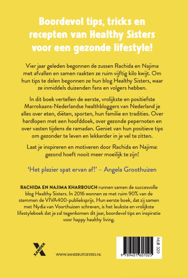 In hun boek vertellen ze je alles over eten, diëten, sporten, hun familie en tradities. Over hardlopen met een hoofddoek, over gezonde pepernoten en over vasten tijdens de Ramadan. Geniet van hun positieve tips om gezonder te leven en lekkerder in je vel te zitten. Laat je inspireren en motiveren door Rachida en Najima: gezond hoeft nooit meer moeilijk te zijn!