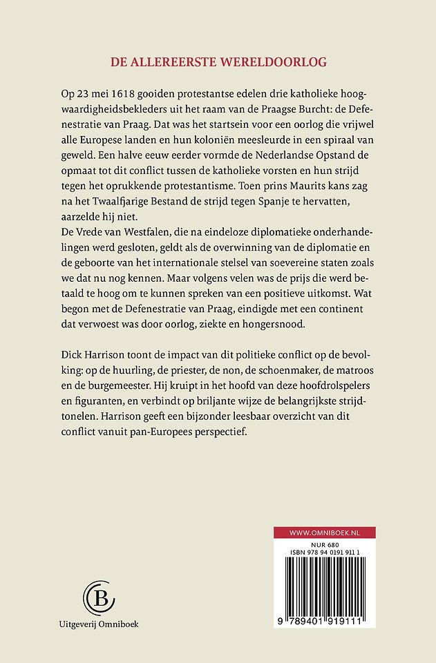 Dit is het eerste Nederlandstalige boek over dit thema vanuit Europees perspectief. Dick Harrison heeft in dit boek aandacht voor de huurling, de priester, de non, de schoenmaker, de burgemeester en andere gewone mensen. Daarnaast laat hij zien dat de Dertigjarige Oorlog een pan-Europese oorlog was, en heeft hij oog voor de gevechten in Afrika en Amerika.