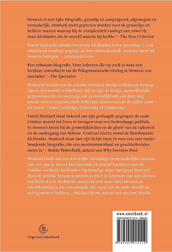 ‘Nemesis’ van classicus David Stuttard is een meeslepende biografie van de Griekse (anti-)held Alcibiades. Hij was onmetelijk rijk, gruwelijk aantrekkelijk, ongelooflijk charmant, een kundig generaal en een meedogenloze politicus. Hij was tevens een beruchte serieverrader, die tijdens de Peloponnesische Oorlog overliep naar Sparta en vervolgens naar de Perzen. Stuttard laat het oude Athene in al zijn glorie herleven als hij Alcibiades volgt van zijn kindertijd tot het hoogtepunt van zijn absolute macht, tegen een achtergrond van culturele pracht en internationale chaos. Met ‘Nemesis’ brengt David Stuttard een meeslepend meesterwerk over de beruchte verrader die historici al eeuwen in zijn greep houdt.