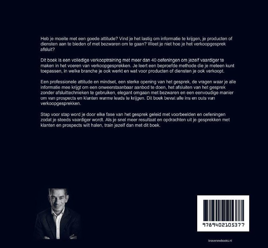 Dit boek is een volledige verkooptraining met meer dan 40 oefeningen om jezelf vaardiger te maken in het voeren van verkoopgesprekken. Je leert een beproefde methode die je meteen kunt toepassen, in welke branche je ook werkt en wat voor producten of diensten je ook verkoopt.