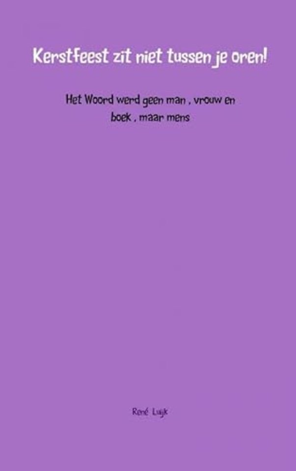 René Luijk denkt ''niet'', maar hij leeft. Niet denken , maar leven. Hij stelt in zijn Kerstboek dat het Kerstfeest leidt tot integratie. Daar ruist langs de wolken een lieflijke Naam , die hemel en aarde verenigt te zaam. Het met grote vreugde vieren van het Christusfeest is hét geneesmiddel tegen desintegratie. Metafysica leidt tot desintegratie. Een christen leeft tussen metafysisch dualisme en monisme. Het Kerstfeest leidt niet tot desintegratie. Het Woord is vlees (mens) geworden. Het Woord is mens (vlees) geworden. Luijk beweert dat er alleen mensen zijn. Een geslachtsdeel zegt werkelijk niets over jouw karakter of persoonlijkheid.Het Woord werd geen man of vrouw of boek (inlibratie) of kerstman. Het christendom is geen boekreligie.Wordt een mens gelukkig door (veel)te denken? Het christendom gelooft niet in prof dr Jezus Christus.De Joodse geest leeft interdividueel in de tijd/geschiedenis. De Griekse geest denkt individueel in de ruimte (de kathedraal!).Het boek is té praktisch geworden. Steun de streetkids in de wereld via www.boekwinkeltjes.nl (René Luijk). Dagelijks sterven er 19.000 kids wereldwijd. Luijk gaat voor nul.