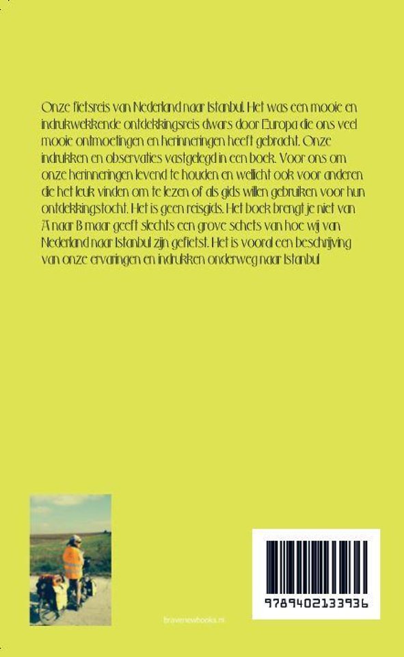 Onze fietsreis van Nederland naar Istanbul. Het was een mooie en indrukwekkende ontdekkingsreis dwars door Europa die ons veel mooie ontmoetingen en herinneringen heeft gebracht. Onze indrukken en observaties vastgelegd in een boek. Voor ons om onze herinneringen levend te houden en wellicht ook voor anderen die het leuk vinden om te lezen of als gids willen gebruiken voor hun ontdekkingstocht. Het is geen reisgids. Het boek brengt je niet van A naar B maar geeft slechts een grove schets van hoe wij van Nederland naar Istanbul zijn gefietst. Het is vooral een beschrijving van onze ervaringen en indrukken onderweg naar Istanbul