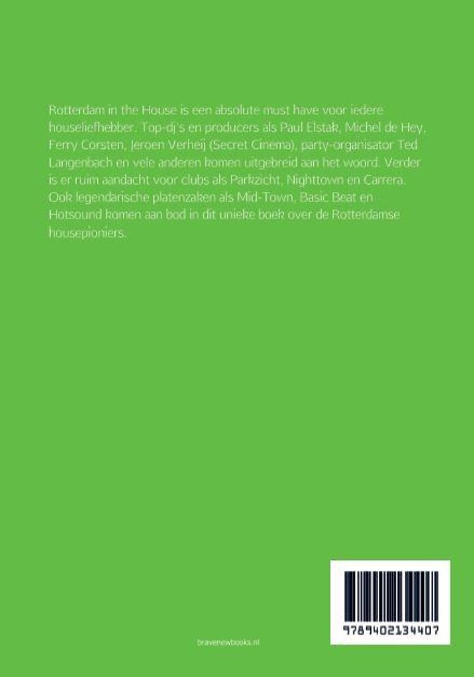 Rotterdam in the House is een absolute must have voor iedere houseliefhebber. Top-dj's en producers als Paul Elstak, Michel de Hey, Ferry Corsten, Jeroen Verheij (Secret Cinema), party-organisator Ted Langenbach en vele anderen komen uitgebreid aan het woord. Verder is er ruim aandacht voor clubs als Parkzicht, Nighttown en Carrera. Ook legendarische platenzaken als Mid-Town, Basic Beat en Hotsound komen aan bod in dit unieke boek over de Rotterdamse housepioniers.