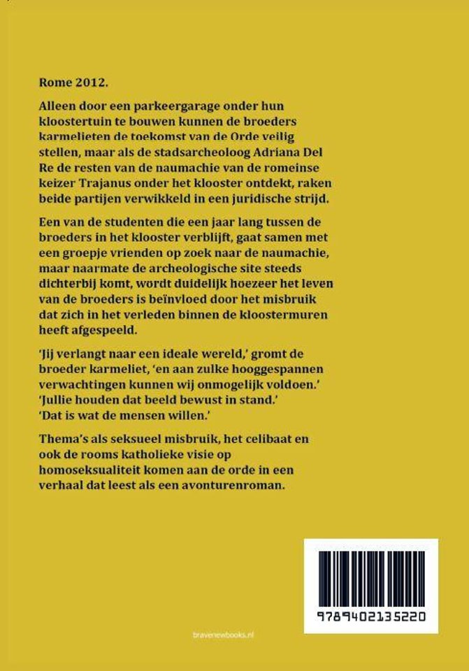 Alleen door een parkeergarage onder hun kloostertuin te bouwen kunnen de broeders karmelieten de toekomst van de Orde veilig stellen, maar als de stadsarcheoloog Adriana Del Re de resten van de naumachie van de romeinse keizer Trajanus onder het klooster ontdekt, raken beide partijen verwikkeld in een juridische strijd.