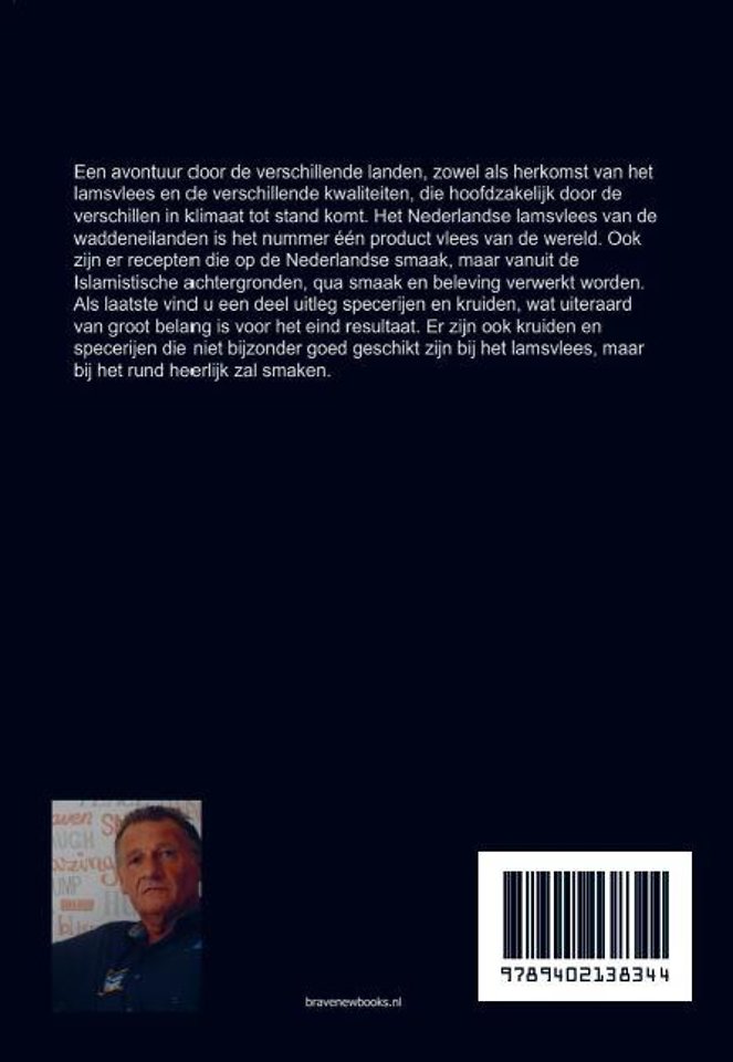 Een avontuur door de verschillende landen, zowel als herkomst van het lamsvlees en de verschillende kwaliteiten, die hoofdzakelijk door de verschillen in klimaat tot stand komt. Het Nederlandse lamsvlees van de waddeneilanden is het nummer één product vlees van de wereld. Ook zijn er recepten die op de Nederlandse smaak, maar vanuit de Islamistische achtergronden, qua smaak en beleving verwerkt worden. Als laatste vind u een deel uitleg specerijen en kruiden, wat uiteraard van groot belang is voor het eind resultaat. Er zijn ook kruiden en specerijen die niet bijzonder goed geschikt zijn bij het lamsvlees, maar bij het rund heerlijk zal smaken.