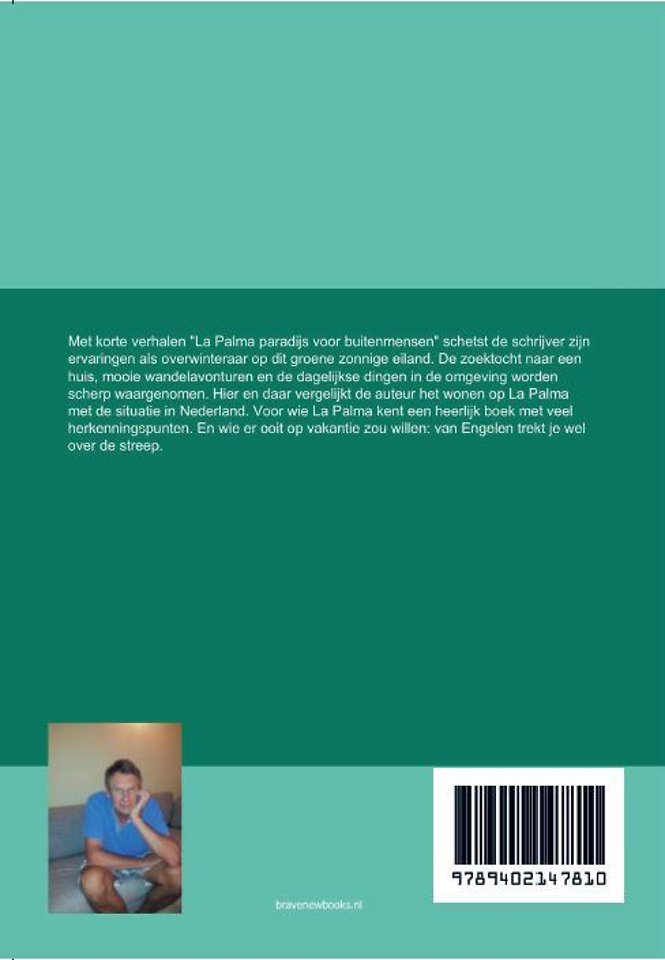 Met korte verhalen "La Palma paradijs voor buitenmensen" schetst de schrijver zijn ervaringen als overwinteraar op dit groene zonnige eiland. De zoektocht naar een huis, mooie wandelavonturen en de dagelijkse dingen in de omgeving worden scherp waargenomen. Hier en daar vergelijkt de auteur het wonen op La Palma met de situatie in Nederland. Voor wie La Palma kent een heerlijk boek met veel herkenningspunten. En wie er ooit op vakantie zou willen: van Engelen trekt je wel over de streep.