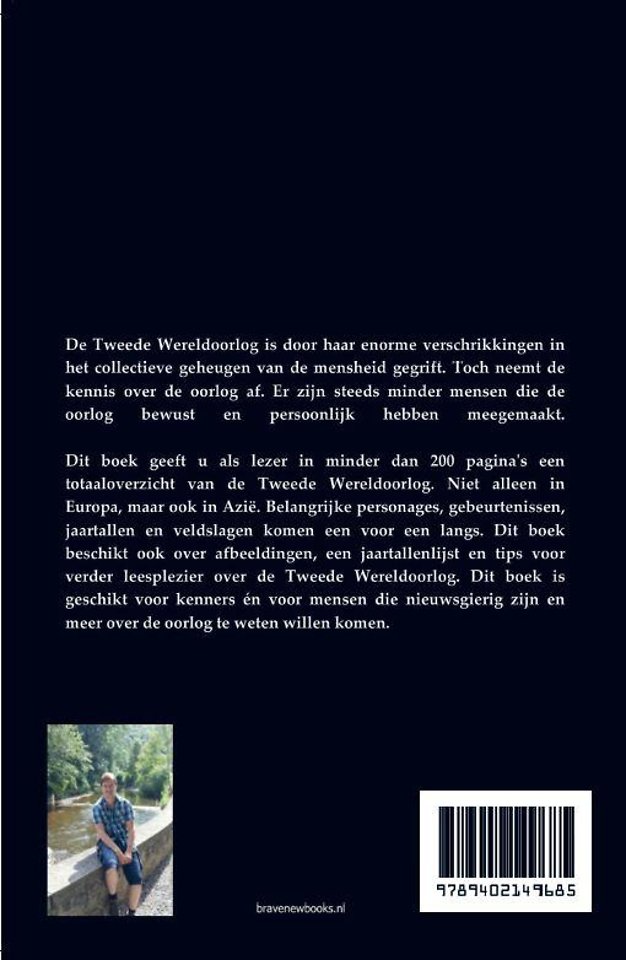 Dit boek geeft u als lezer in minder dan 200 pagina's een totaaloverzicht van de Tweede Wereldoorlog. Niet alleen in Europa, maar ook in Azië. Belangrijke personages, gebeurtenissen, jaartallen en veldslagen komen een voor een langs. Dit boek beschikt ook over afbeeldingen, een jaartallenlijst en tips voor verder leesplezier over de Tweede Wereldoorlog. Dit boek is geschikt voor kenners én voor mensen die nieuwsgierig zijn en meer over de oorlog te weten willen komen.