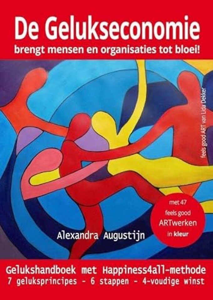 Als het aan de auteur van 'De Gelukseconomie' ligt, geluksmarketeer Alexandra Augustijn, gooien we direct het roer om en zetten we geluk overal centraal. Het paradoxale is dat gelukkige mensen nog veel meer winst realiseren; het doel van het kapitalisme. Viervoudige winst maar liefst: op welzijns-, sociaal, kwaliteits- en financieel gebied. Op basis van (wetenschappelijk) onderzoek, (eeuwenoude) wijsheid en ervaringen heeft de auteur de happiness4all-methode ontwikkeld: 7 geluksprincipes pas je in 6 stappen integraal toe in je organisaties. Zakelijk en privé.