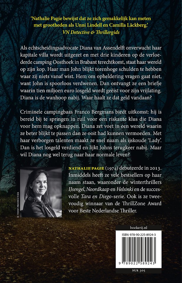 Criminele campingbaas Franco Bergmans biedt uitkomst: hij is bereid bij te springen in ruil voor een riskante klus die Diana voor hem mag opknappen. Diana zet voet in een wereld waarin ze beter blijkt te passen dan ze ooit had kunnen vermoeden. Met haar verborgen talenten maakt ze snel naam als ijskoude ‘Lady’. Dan is het losgeld verdiend en lijkt Johns terugkeer nabij. Maar wil Diana nog wel terug naar haar normale leven?