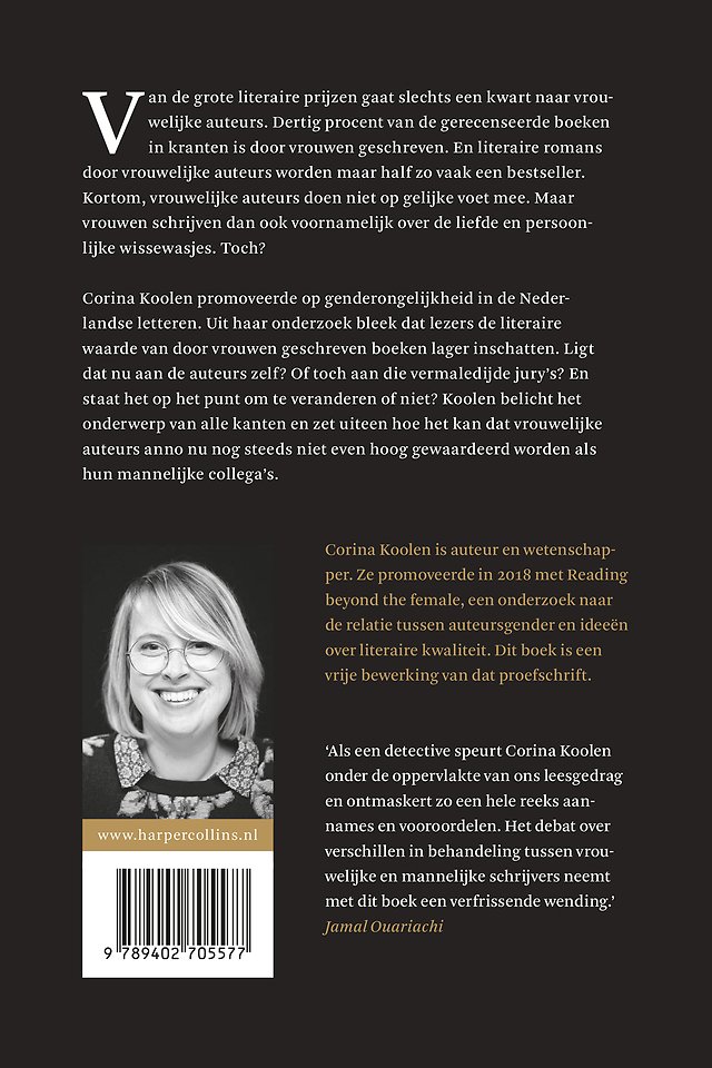 Hoe kan dat? Zijn het de auteurs zelf? Ligt het aan hun schrijfstijl? Hebben de lezers vooroordelen, of zijn het toch de vermaledijde uitgevers en juryvoorzitters? Koolen belicht het onderwerp van alle kanten en zet uiteen hoe het kan dat er anno 2020 nog zo’n groot gat in literaire waardering bestaat.