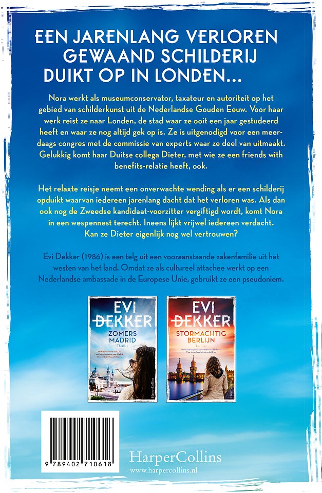 Voor lezers van Suzanne Vermeer, Linda van Rijn en Kiki van Dijk. De nieuwe Evi Dekker gaat over kunst, intriges en giftige relaties in het altijd bruisende Londen.