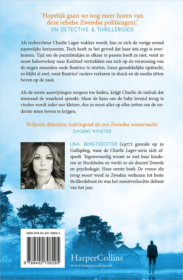 Als rechercheur Charlie Lager wakker wordt, kan ze zich de vorige avond nauwelijks herinneren. Toch heeft ze het gevoel dat haar iets ergs is overkomen. Tijd om de puzzelstukjes in elkaar te passen heeft ze niet, want ze moet halsoverkop naar Karlstad vertrekken om zich op de vermissing van de negen maanden oude Beatrice te storten. Geen gemakkelijke opdracht, zo blijkt al snel, want Beatrice’ ouders verkeren in shock en de media zitten boven op de zaak.