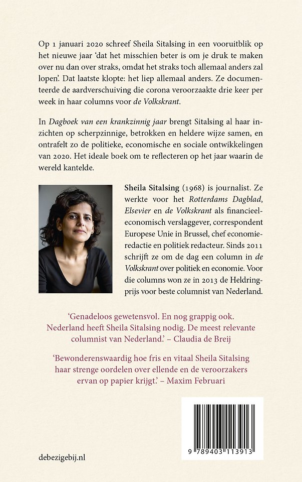 In Dagboek van een krankzinnig jaar'' brengt Sitalsing al haar inzichten op scherpzinnige en heldere wijze samen, en neemt zo de lezer mee door alle politieke, economische en sociale ontwikkelingen van 2020. Het ideale boek om te reflecteren op het jaar waarin de wereld kantelde.