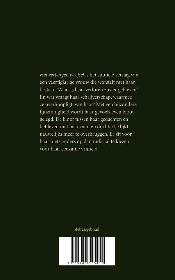 Het verborgen weefsel is het subtiele verslag van een veertigjarige vrouw die worstelt met haar bestaan. Waar is haar verloren zuster gebleven? En wat vraagt haar schrijverschap, waarmee ze overhoopt ligt, van haar? Met een bijzondere fijnzinnigheid wordt haar gevoelsleven blootgelegd. De kloof tussen haar gedachten en het leven met haar man en dochtertje lijkt nauwelijks meer te overbruggen. Er zit voor haar niets anders op dan radicaal te kiezen voor haar eenzame vrijheid.