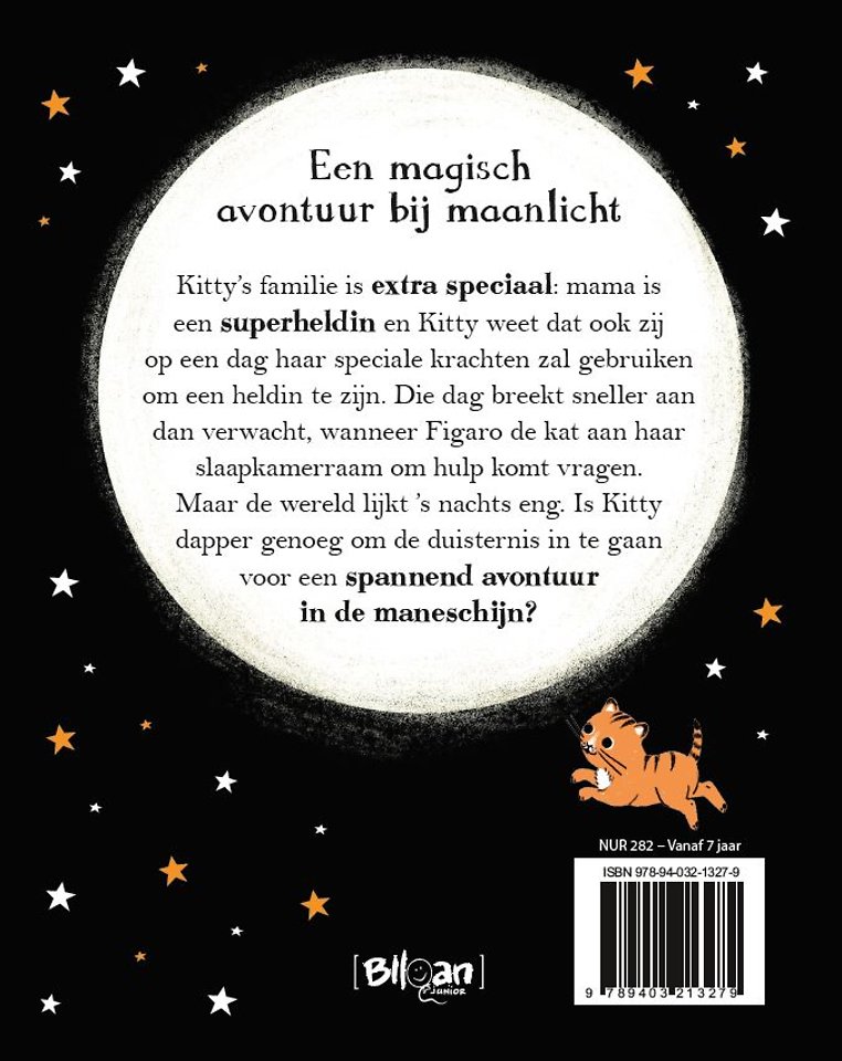 Kitty’s familie is extra speciaal: mama is een superheldin en Kitty weet dat ook zij op een dag haar speciale krachten zal gebruiken om een heldin te zijn. Die dag breekt sneller aan dan verwacht, wanneer Figaro de kat aan haar slaapkamerraam om hulp komt vragen. Maar de wereld is ’s nachts eng: is Kitty dapper genoeg om in de duisternis te treden voor een spannend avontuur in de maneschijn?