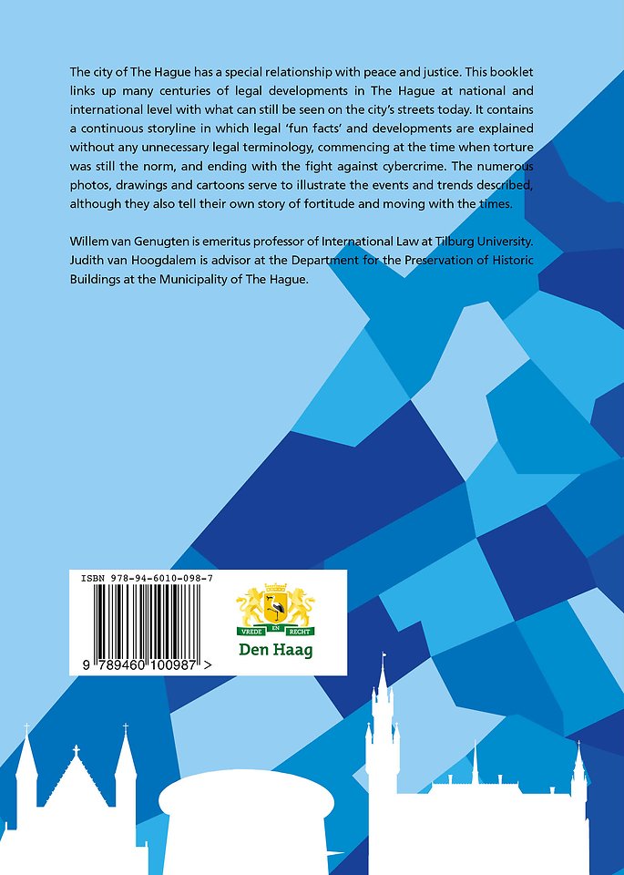 The city of The Hague has a special relationship with Peace and Justice. This booklet links up many centuries of legal developments in The Hague at national and international level with what can still be seen on our city’s streets today. We have chosen a continuous storyline in which legal ‘fun facts’ and developments are clearly elucidated without any unnecessary legalese, commencing at the time when torture was still the norm, and ending with the fight against cybercrime.