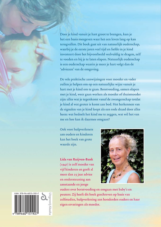Door je kind vanuit je hart groot te brengen, kun je het een basis meegeven waar het een leven lang op kan terugvallen. Dit boek gaat uit van natuurlijk ouderschap, waarbij je de eerste jaren veel tijd en liefde in je kind investeert door het bijvoorbeeld veelvuldig te dragen, zelf te voeden en bij je te laten slapen. Natuurlijk ouderschap is een ouderschap waarin je meer je hart volgt dan de ‘adviezen’ van de omgeving.