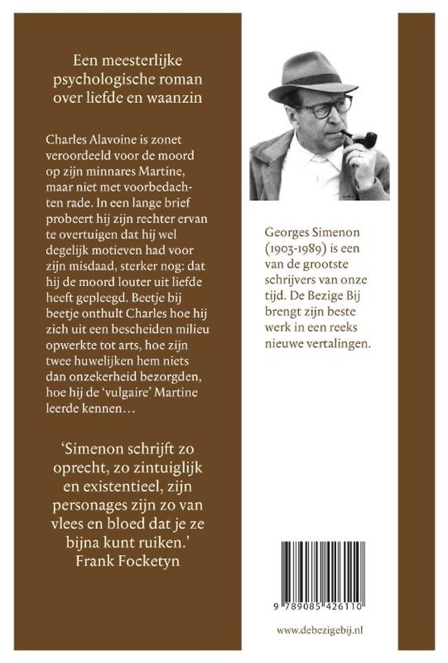 In deze meesterlijke psychologische roman weet Simenon de lezer te charmeren en tegelijk te beangstigen. Op een volstrekt geloofwaardige manier toont hij ons een man die met logische stappen neerdaalt in de waanzin.